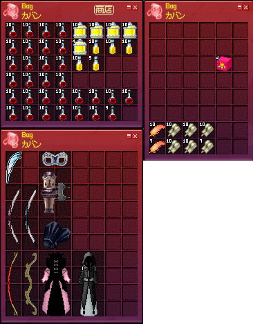↓かばんや追加かばんなどのインベントリ